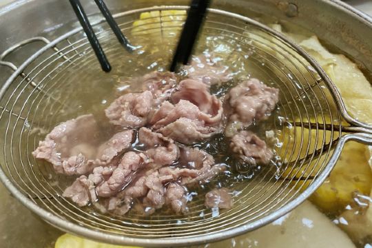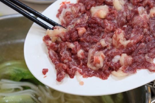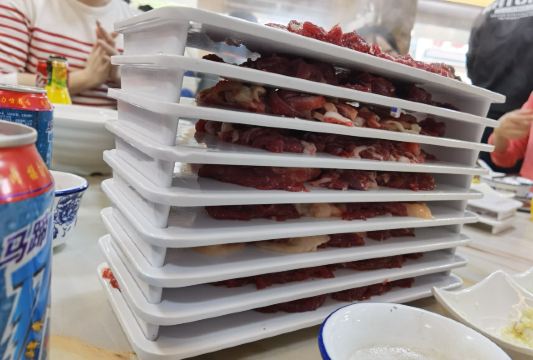 嗯 怎么说呢 排队排到天荒地老 但依旧人丁兴旺 从早到晚 不管哪个时段总有人排队的火锅店 大概就只有他家了吧 要不怎么说群众的眼睛是雪亮的 潮汕这地方不缺火锅 尤其是牛肉火锅 这么个排法也肯定是有些道道的 这牛肉是真的嫩 就刷刷刷几秒 就相当顺滑了 一群人轻轻松松就二十多盘了 不过生意兴隆自然就会带来另一个问题 环境就稍稍差了些 人来人往 里面也是吵吵闹闹闹腾的狠 不过既然是火锅嘛 就是图个热闹 不是嘛 哈哈哈