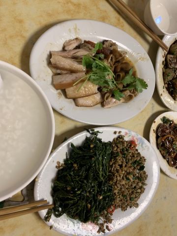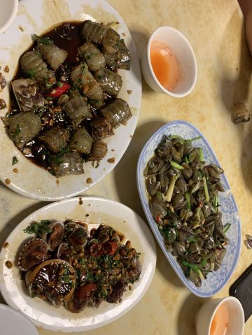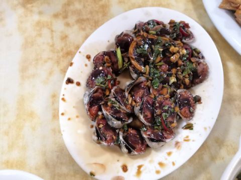 Gui Yuan Bai Zhou广东人吃早茶,潮汕人喝粥。到了汕头怎么能不喝白粥呢,早就做好攻略,桂园白粥是最接地气的店铺了。因为是和爸爸妈妈一起去的,他们年级大了不能带着去吃宵夜,所以我们是下午四点半去的,他们刚刚开始营业,加上我们才两桌。点了生腌三眼蟹,血蚌,虾姑,卤水鹅肾和鹅肠,一人配一碗白粥,鲜美无比。不怕你们笑话,我们还带了很多止泻药去的,就是怕吃生腌拉肚子,还好都没有用上,请大家放心食用,价钱也是平民化三个人人均100👍🏻