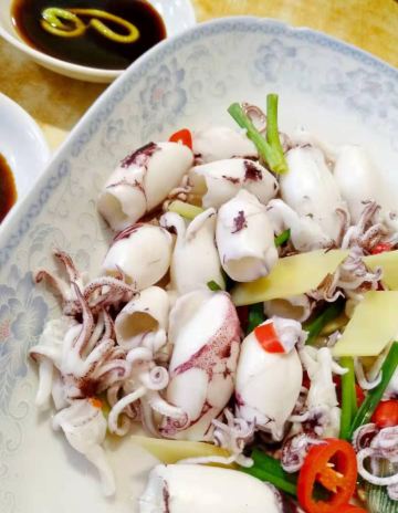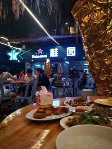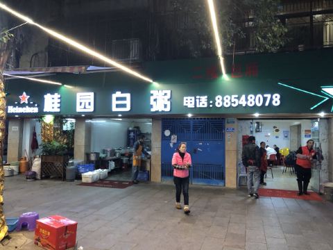 魔女锦鲤昨天晚上吃得不够满足,潮汕出名的血蛤和鱼饭都未能尝到,所以今天晚上继续到大排档品尝地道的风味。在肥喵的介绍下决定来这家桂园白粥试试。与长平老姿娘夜粥一样都是大排档的风格,怕像昨天太晚去没东西吃,我们提前6点就到了。6点去还挺多位置,但点菜回来眨眼间就坐满了,可见受欢迎程度。 各式各样的生腌,鱼饭,海鲜,卤水任君选择,我们点菜的时候人不多,点菜的小哥态度很好,还会说粤语,还介绍我们哪种鱼饭会比较适合我们吃,态度亲切多了,还帮我们亲自送餐。不过同样是不知道价格的,都是吃完饭再计算,不过这里的价格不贵,还算是放心。 鱼饭是潮汕地方特色,鱼饭不是饭喔。鱼饭其实就是潮州的“冻鱼”,是用新鲜海鱼水煮而成。吃的时候可以冻吃,也可以再把它煎热或者蒸热吃。点菜小哥向我们推荐了马鲛鱼,鱼肉洁白结实,它的制作方法类似于白斩鸡,能更好地保留鱼肉的原有的鲜甜味,配上豆拌酱和白粥一起吃,完美! 潮汕非常出名的一道菜,生腌血蛤,鲜甜十足。 白灼墨鱼仔,简单的做法,白灼,直接蘸芥末豉油吃,原汁原味,鲜嫩,鲜味。 来一碗普通的白粥送菜,潮汕最喜欢的搭配。 结账总共110元,价格很实惠。终于把想吃的东西都基本吃完了。