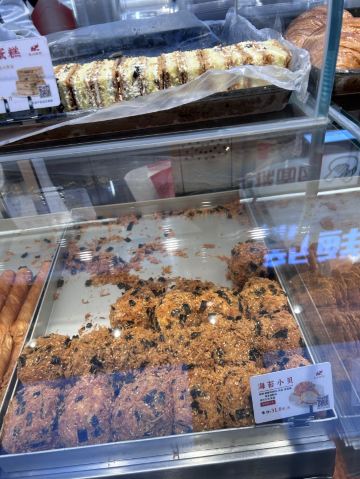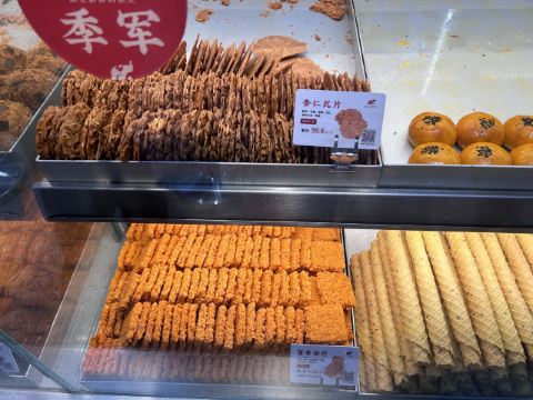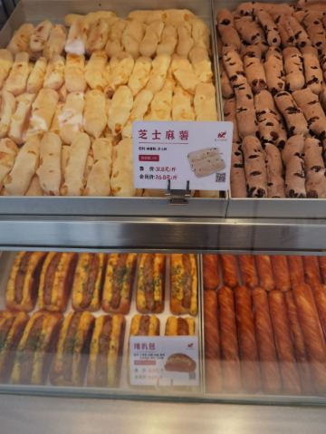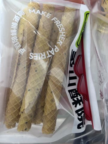 位于银泰惠坊街的象山酥院,以前一直吃他们家的蟹黄锅巴当夜宵。店面不大,人一多感觉有一点小拥挤。 很久没来,发现多了一些没吃过的新品。试吃了牛奶棒,感觉外皮酥脆,奶味也足,下次可以试试。 蛋卷是半斤一斤这样买了,所以买了半斤尝尝鲜。买了一块虎皮芋泥蛋糕,货料满满的一大块。两块虎皮中间有一层厚厚芋泥,一层海苔麻薯肉松,一口下去大大满足。 蛋卷也不错。 杏仁瓦片,买了10片,杏仁片很多,很薄很好吃。