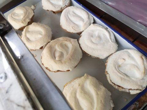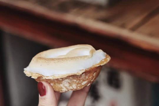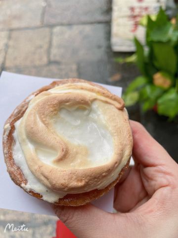 小蜜桃爸爸爱遛娃奶油小攀和蛋挞很像,是绍兴的特色小吃,奶油小攀也是很多绍兴人从小吃到大的小吃,可以说是绍兴人儿时的记忆。想吃最正宗的奶油小攀,可以走到鲁迅故里位于新建南路的入口,位于新建南路608号的“高老太奶油小攀”,绍兴人都知道,这家店已经经营了50多年的奶油小攀,店面不大,但是很容易找到。奶油小攀5元一个,奶油小攀可以分成3个部分,顶部白色的像是奶油,但是实际不是奶油,是蛋清打出来的,味道很甜,单独品尝的时候甚至可以感觉到糖的颗粒,如果看到有水渗出的话,记得要快速吸允,流到手上黏黏的;中间部分是软黄色,应该是打碎后的杂粮,味道比较淡,如果和上层白色部分一起入口,味道正好;底部相当于一个,挺脆的,可以吃,奶油小攀要趁热吃,口感比较软,所以也不建议打包带回,也不建议多买,我吃了一个就已经有点腻的感觉了,品尝一下老绍兴的味道即可。