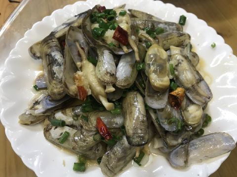酱爆小鱿鱼,爆炒花蛤,葱姜炒梭子蟹,蒜蓉贻贝,海鲜面,红烧虎头鱼,海鲜炒饭,蒜泥海菜,口水蛏子,清蒸海鲈鱼,海胆蒸蛋,虎头鱼豆腐汤,梭子蟹,油焖茄子,鳗鱼梅干菜,红烧七彩鱼,爆炒梭子蟹,贻贝