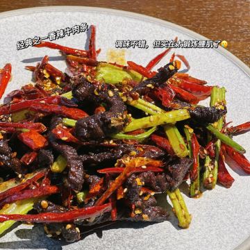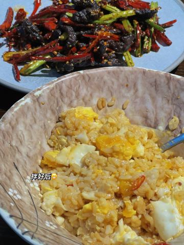 电风扇啊电风扇这家店是小伙伴在动车上就推荐给我了,说一定要尝尝他们家传统拌饭。 离西塔主街还有点远,起码拐了四个弯才到。太后没有耐心了,想着随便进一家就可以吃,我却非要坚持到最后。哈哈哈,吃货的坚持。 店面是天蓝色的,其实很远就能看到,我们到店是下午一点半,周一,居然坐满了,都是年轻人,看来这家拌饭还是很吸引人呢。 传统拌饭,10元,嚯,价格很实惠啊。一小坨米饭,三个鸡蛋,三个。还配了一小碟的拌饭酱汁倒进碗里,搅拌,鸡蛋的香味就出来了。说实话,味道普通,可能是因为性价比很高受到大家喜欢吧,确实实惠呀。 点了一份牛肉,40元,微微甜,很好吃,重点是这个牛肉片放进拌饭里面就太好吃了 事实证明我确实是爱吃肉的孩子。 还点了一份菜一个炒饭,牛肉配传统拌饭一定要推荐给大家哦,绝对满意