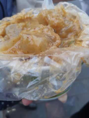来沈阳必吃的炒焖子 彩塔炒焖子 门口时刻都在排队 但进度很快 焖子都是炒好的盛起来就走 里面是有土豆泥的哦! 位置在彩塔夜市儿的正门口,非常好找