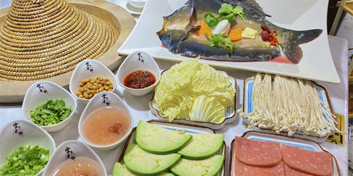 云上生态锅,云南生态锅,鱼肉鱼汤鲜美,蒸汽石锅鱼,鲜虾滑,虾滑,江团鱼,菌类拼盘,洋芋沙拉,鲜花饼,手擀面