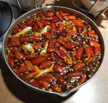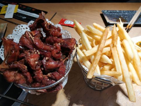 拔草奚记的第二家店。鸡架是很好吃啊,甜口,肉也挺多的。薯条的量也是巨大,不过味道没有西餐厅的好,总感觉在串店里吃薯条有点不如主流。筋皮和大油边也挺好吃的,一般去串店自己点也会点这俩。麻辣烫有点逊色了,不过里面还有不少鱼丸。龙虾尾的数量挺多,口感较辣。马勺牛骨髓,川锅我就喜欢点牛骨髓,这样一个马勺满足了,不错。