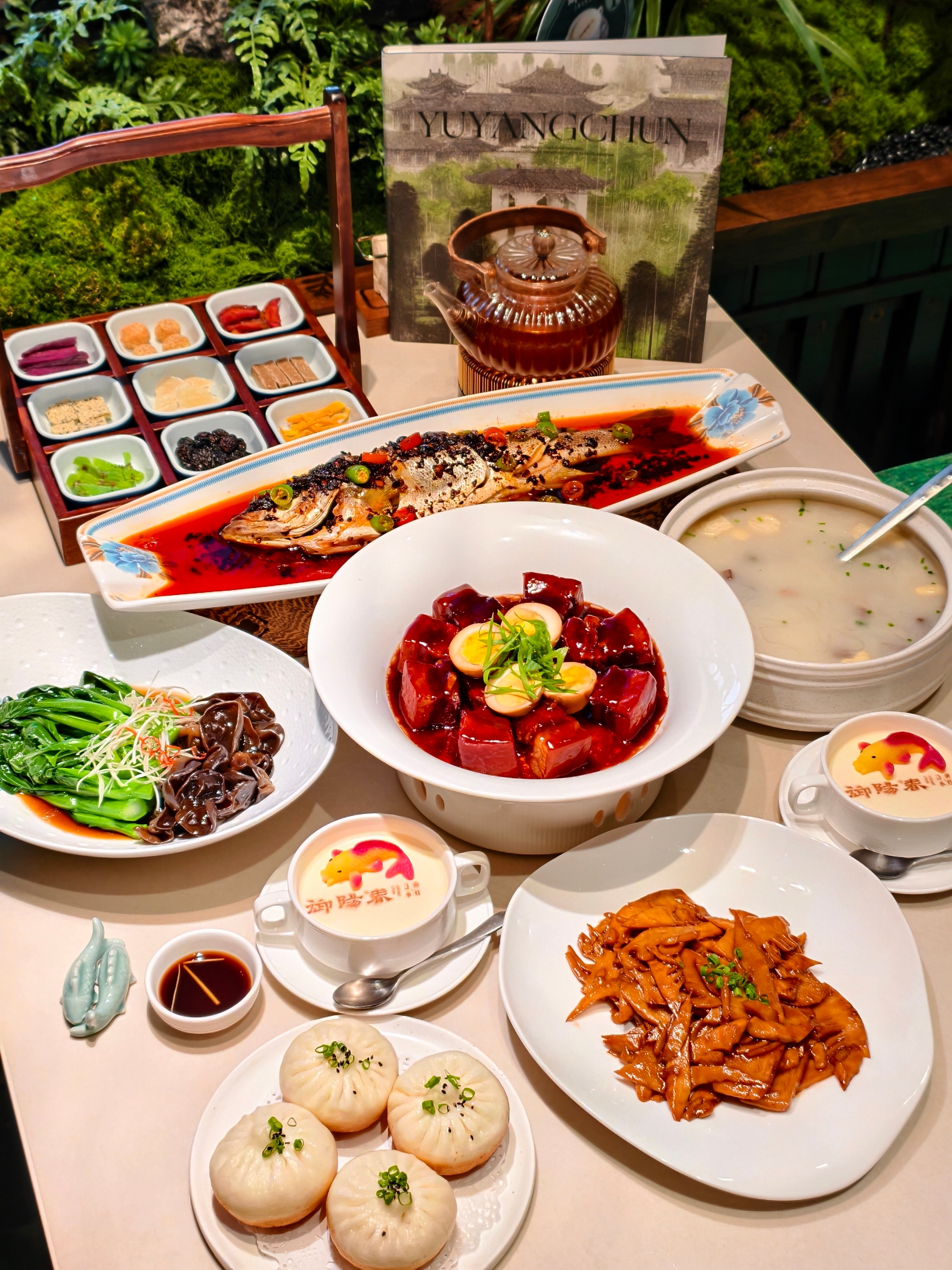 臭鱼,鸭血粉丝汤,养生黑豆腐,金牌蒜香小排,阳春爆小虾,生煎包,双椒安徽臭鱼,本帮红烧肉,杭式酱鸭,生卤虾,桂花糯米藕,鲜肉小笼包,招牌狮子头,肉汁萝卜,淮阳全家福