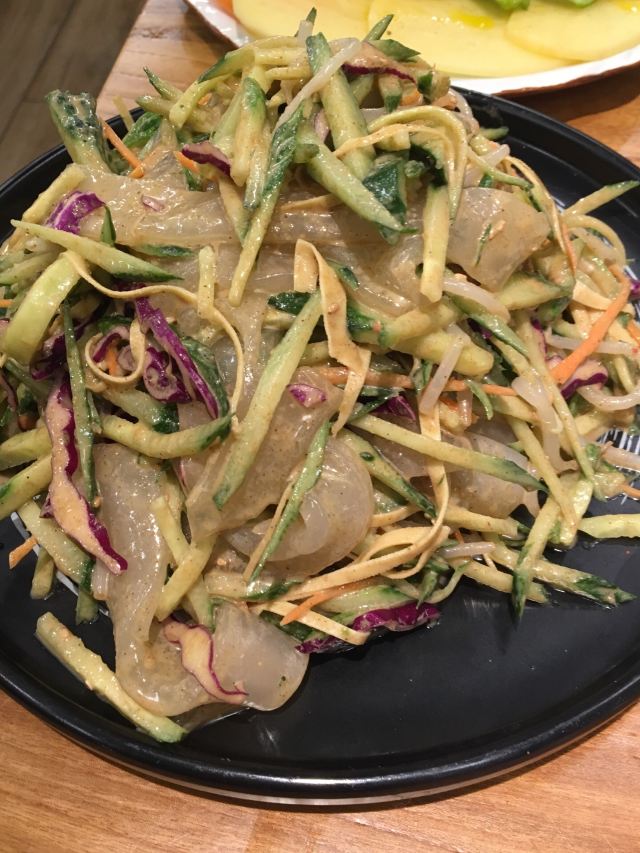 建开烧烤,是一家以烧烤为主的餐厅。羊肉串不错,颜色焦黄、油亮,味道微辣,不腻不膻,鲜嫩可口,将鲜嫩羊肉切成拇指大小的肉片,平串在特制的铁钎上,将串好肉的铁钎平排在烤炉槽上烤熟,调料可随口味而定,深受很多人的喜爱。还有拌饭,吃起来很有口感,颗粒分明,味道浓郁,做法很简单,就是在碗底放一个煎好的鸡蛋,然后把适量的米饭放入盛有鸡蛋的的碗内,根据个人口味加入各种配菜、辣酱,搅拌均匀就大功告成了。烤牛肉也不错,肉厚而稍肥,肉质鲜嫩,吃起来口感很好,牛肉切成薄厚均匀的片,用淀粉将牛肉包裹,撒上胡椒粉和别的需