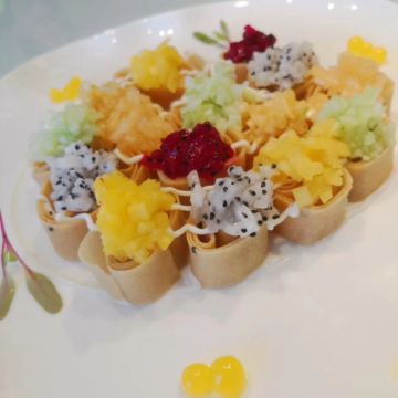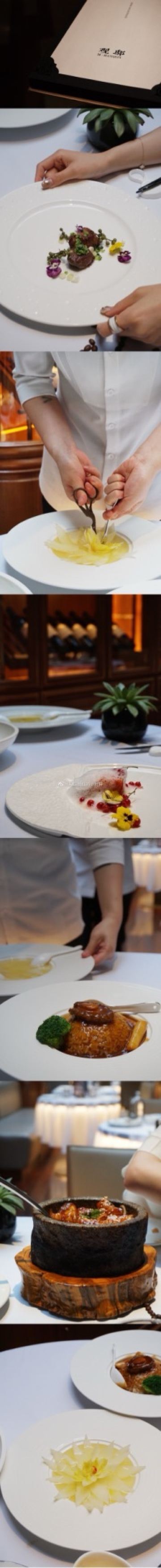 红枣枸杞炖美国响螺,四月冲菜椒麻牛肉,石锅银雪鱼,红米肠粉,茉里海皇一品煲,红花汁扣牛尾,石锅鱼翅,黑鱼子墨绿青豆沙拉,脆皮红米肠粉,琥珀核桃,红烧安格斯牛肋,龙虾汤蒸海胆,黑松露手打鱼付,清蒸东星斑,三杯银鳕鱼,餐前菜人生四味,花雕蒸阿拉斯加帝王蟹,榴莲酥