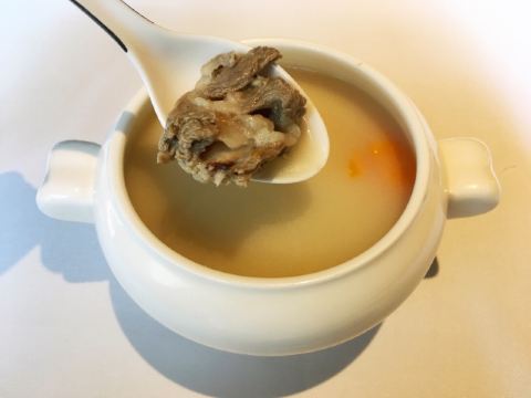 hi绿野仙踪沈阳一共有四家汤城茉里,这一家直接叫茉里•官邸,去之前先看过夜景照片,喜欢的不得了。 『地址』八经街61-1号建筑,这是一栋沈阳市历史建筑,始建于1928年,砖木结构住宅建筑。曾是张作相官邸,1929年赵一获初来沈阳与张学良暂居于此,1930年搬离。 『环境』外观这座历史建筑就如同小城堡般美好,带着历史的厚重感和欧式建筑的气质,闹中取静坐落于此。户外就餐区也很舒适,满眼绿意,在这里聊天用餐,可以度过很惬意的一个下午,傍晚时分,彩灯亮起,更是增添了梦幻的气息。 室内的色彩以砖红色为主,这让我觉得很像张氏帅府内的颜色,家具大多为木制的,辅以大理石及沙发,台阶也修成了不规则岩石的形状。屏风很有艺术气息,也兼具了隔断的作用,所有的餐桌都自带光环,最深处的临窗位双人座极其浪漫。可以坐电梯前往二楼或者负一层,但我还是喜欢走楼梯。木制楼梯旋转到二楼,这里都是包房,最大的包房内自带卫生间,这样可以方便老人和小盆友的用餐。负一层是我比较期待的,这里主要的作用是酒窖,用餐环境很唯美,最期待的是景观位,阳光倾泻而下,周围都是石壁,阳光房用餐真的很惬意,需要提前一天预约喔。其实我明明预约到了景观位,但是当天现场跟我说在维修有噪音,建议我回到一楼用餐,虽说我心里不情愿,还是考虑了一下店家的感受同意了。 每人8元的餐位费包含小菜、水果和毛巾,但我们没有水果。 『小菜』小菜的造型比较别致,是一个金色的葫芦,葫芦依次打开分别是辣椒丝泡牛肉干、木耳、花生米、苦瓜丁。『老火靓汤』粤菜讲究餐前先喝汤,这一碗浓汤搭配小排骨,玉米粒和胡萝卜,鲜浓无比。 『干烧有机黄鱼』黄鱼的个头蛮大的,蒜瓣肉,肉质很鲜香,甜中带有一点微微的辣。 『沙爹脆皮鸡』鸡肉外脆里嫩,沙爹的口感就是甜中带有一丝麻辣。 『虾酱西生菜』砂锅煮的生菜色泽鲜绿,口感脆爽,再搭配虾酱的味道,很好吃。 『鸡丝凉面』面条竟然变成粉色的,很有少女心,酱料中虽不见蒜末儿,却有浓重的蒜辣儿味,还有点淡淡的芥末味道,不过我不确定,但我可以确定这是一款辣口味的凉面。 『蟹黄小笼包』主食是粤菜的代表面食,蟹黄小笼包的汤汁很是鲜美,可惜的是另外两个夹起来就漏了,搭配蘸料,很美味。