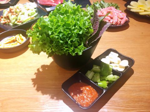 hi绿野仙踪【环境】整个西塔地区一共有三家门店,这家是三部,最开始找的时候,按照地址还进到了社区里面,后来才发现,其实它是属于门市房,是在社区外面的一排楼里。 刚一进屋就看到了桃花树和灯笼,很喜欢,二楼的灯笼更多。 【服务】小哥哥们都很好。 「餐前小菜」三样小菜不同于平常的韩餐辣萝卜等等小菜。 「雪花上脑」上脑肉不愧是牛身上最好的部位,很鲜嫩。 「调味牛五花」调味之后再烤肉,还有蘸料,很入味。 「坛子肉」小小一坛很精致,也很好吃。 「烤风干肠」很脆,很精瘦的口感。 「辣炒小墨斗」闻起来甜甜的,香香的,这种香带着甜味,可是吃起来却是超级辣。 「烤土豆片」还不错的口味。 「拌花菜」甜辣。 「蔬菜拼盘」苏子叶拼生菜。 「牛肉炒饭」很香。 「烤肉调料」调料分成干料和麻酱调料两种。