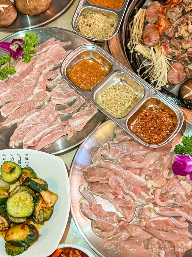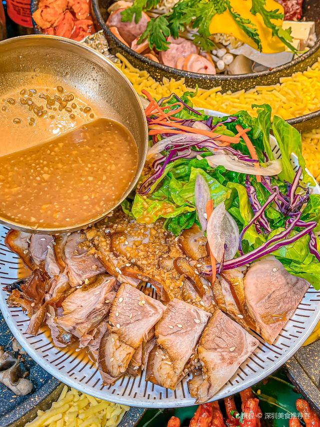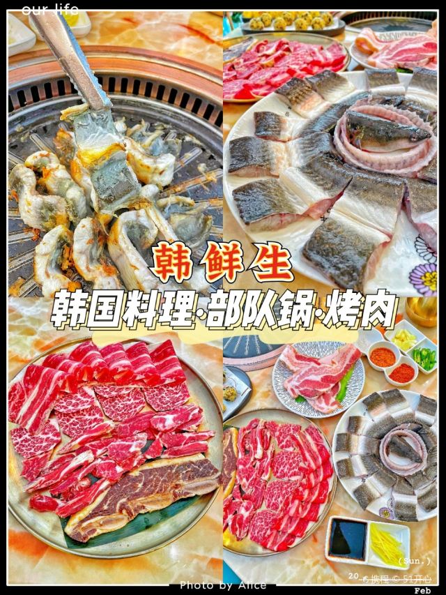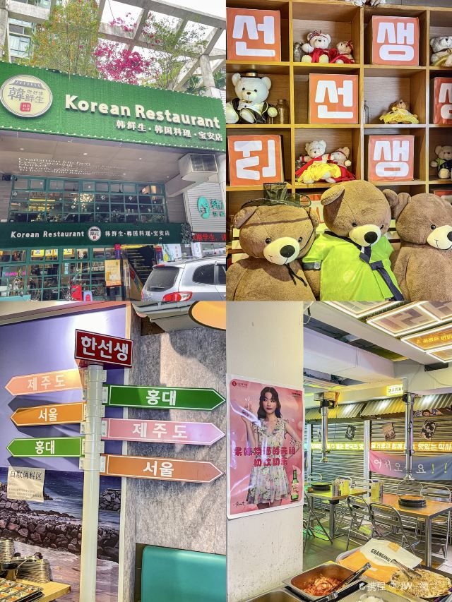 欣欣酱0214. 最近又是韩剧📺上头了,你们也和我一样嘛? 一看韩剧就想吃剧里的各种美食🍲 - 路过海雅缤纷城看到这家韩国料理 脚步🏃🏻♀️停止走不动了 赶紧呼叫☎️朋友们 趁热打铁安排了这顿好好吃的韩餐 - 🌟亮点 ✅店里有烤肉、部队火锅、铁板烧、韩式海鲜,韩式炸鸡,种类超多超全🤩! ✅韩国综艺节目经常出现的菜品4吃活八爪,上桌会动活烤鳗鱼,1988韩国街边铁板牛肠,这里都可以找到! ✅老板和主厨都是地地道道的韩国人🇰🇷,味道自然不担心了! ✅小菜特别好吃而且全部都是无限量🆓供应,有泡菜、豆芽、萝卜、海带丝等,宝子们可以根据自己的喜好来选择! ✅他们家还是深圳部队火锅🍲NO.1,真正还原了韩国传统的部队火锅,性价比真的超高! - 🌟环境 有上下两层,一楼是烤肉区,二楼是火锅区 光线和设计感都蛮不错的,很适合朋友聚会 二楼还有济州岛泰迪熊🐻摆设区 听说泰迪熊是老板从济州岛专门买回来的! 穿着韩服的小泰迪熊也太卡哇伊啦🤗! - 🌟点单攻略 1⃣️盐烤鳗鱼 鳗鱼🐟现点现杀的,整条端上来的时候鳗鱼头都还在动😯,肉眼可见的新鲜 烤制金黄焦香,肉质鲜嫩,包着紫菜一口一个简直太好吃😋啦 - 2⃣️牛肉拼盘 这个拼盘的性价比很高👍🏻 可以满足不同小伙伴的聚餐需求! 嫩红的纹理可见的肉色🥩,看得见的新鲜 烤起来也不需要太久的时间,吃起来超级香😋! - 3⃣️猪五花肉 五花肉🥩纹理清晰,烤得滋滋作响 焦焦脆脆也别有一番风味 肥瘦相间,蘸上配好的调料 包裹着生菜真是太满足😋! . 🌈店名:韩鲜生韩国料理·部队锅·烤肉(宝安店) 📍位置:宝安区兴华二路73-20号 🚇交通:地铁5号线灵芝站A1口