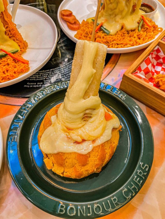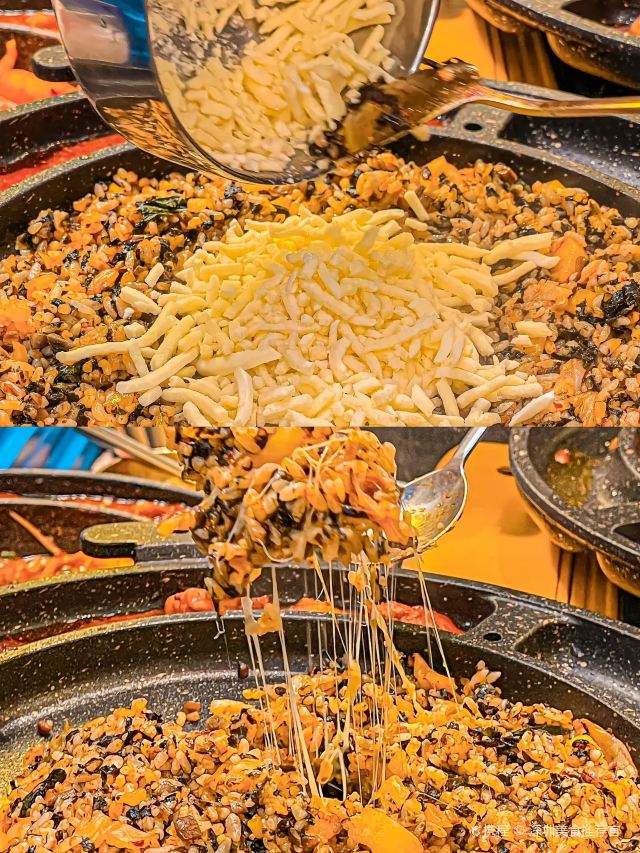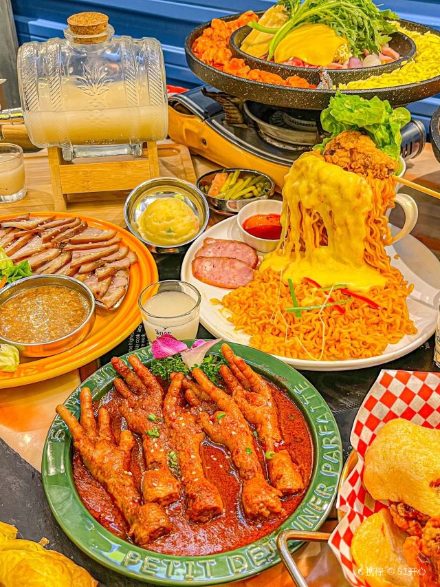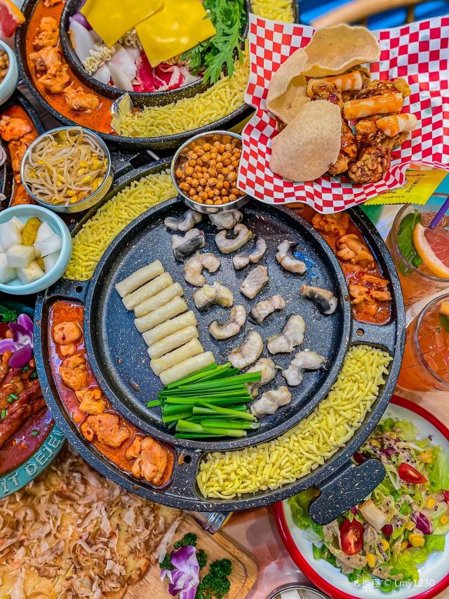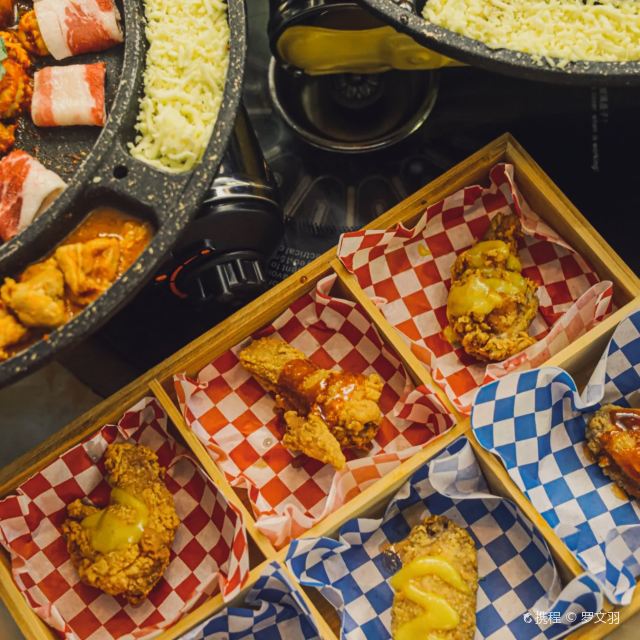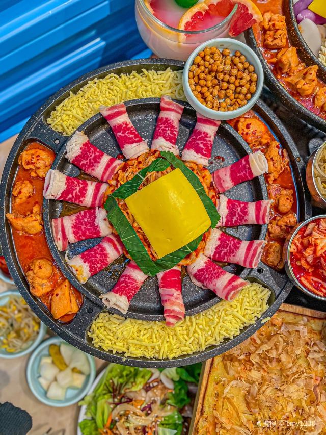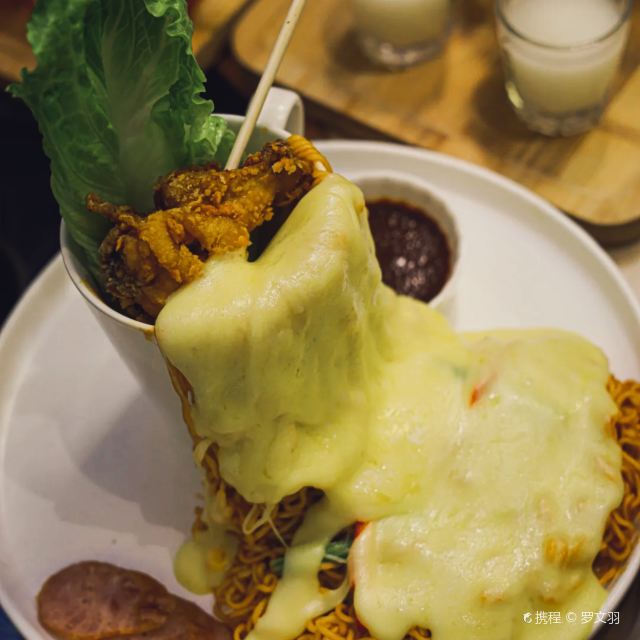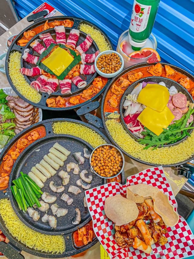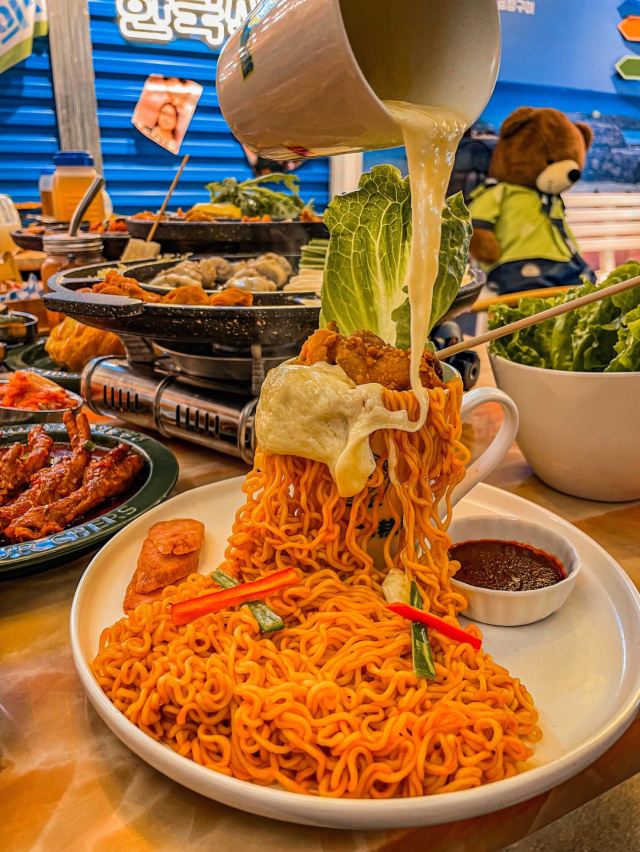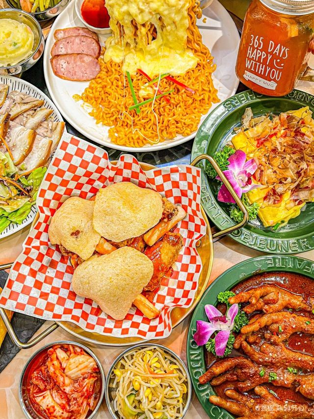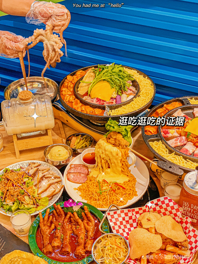 捞月亮的猫吖跟姐妹在海雅缤纷城逛街,找到一家性价比超高的韩料~ 人气超高,份量足,店里还有大熊熊🐻可以互动的~ 🍲|「八爪鱼五花肉芝士春川鸡铁板」 铁板外面一圈煎着芝士🧀️和鸡腿肉 铁板里面烤着八爪鱼🐙和五花肉🥓 一次性可以吃到这么多种肉肉好满足 芝士能拉丝包裹着鸡腿肉也太绝了叭‼️ 鸡腿肉的酱香混合着浓郁的芝士口感超级丰富💕 🍗|「炸鸡六宫格」 他们家炸鸡翅可是深圳炸鸡排行榜🔝,炸鸡深度爱好者那不必须得来一份~我们吃的是六宫格,非常好吃😋啊,鸡翅非常大个外酥内嫩,配的酱料也绝绝子~ 🍜|芝士火山辣杯面 这个份量超级大,🌋火山面上面淋了一层厚厚的芝士 芝士爱好者绝对要点,吃一口面混上浓厚的芝士 这味道也太赞了‼️芝士和辣味配合的也恰到好处 #韩国料理 #浪漫约会餐厅 #深圳美食