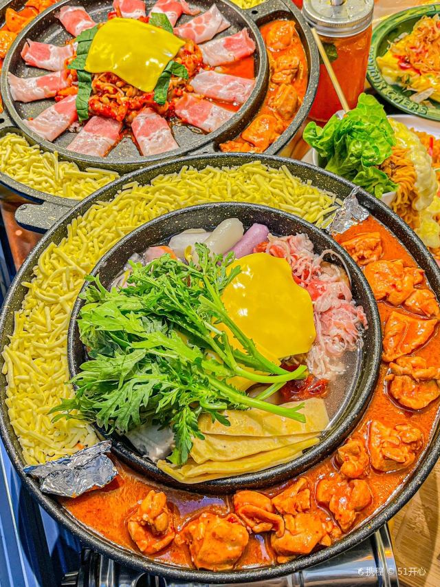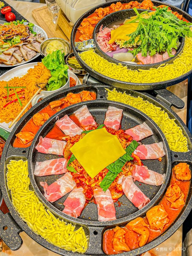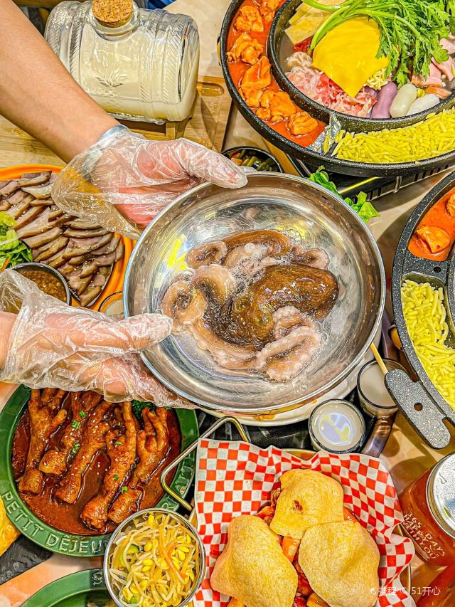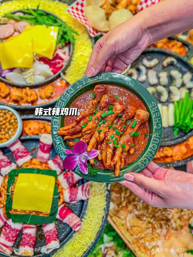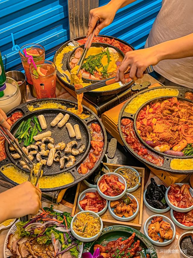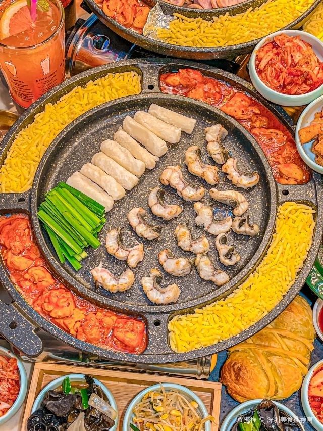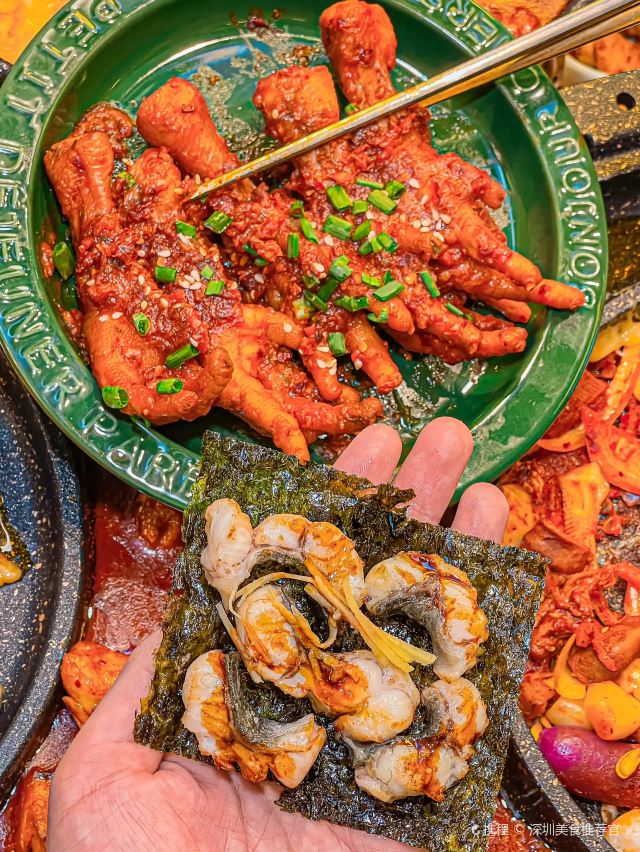 是美媛呐~~~~~~~~~~~~~~~~~~~~~~~~~~~~~~~~~ 一直都有留意到宝安这家韩料店特别火🔥逃不过大数据总是被馋到🤤今天我也带上闺蜜一起来打卡啦🎈听说他们老板是韩国人而且还是主厨喔❤️,不得不说环境的氛围感很nice ✔️有小熊🧸陪你一起用餐🍴可以听着一首首耳熟能详的韩曲音乐🎵韩剧里面的美味都在这里实现啦✨ • 🍢「活烤鳗鱼芝士春川鸡铁板」 这个一定必点❗鳗鱼是现活现处理的✔️份量足 肉质鲜嫩多汁,经过铁板的烤炙后表面焦香,再按照他们家的经典搭配,用紫菜包括着姜丝+鳗鱼+酱料❤️,不得不说这个吃法绝了,确实搭配的很美妙 • 🍢「八爪鱼五花肉芝士春铁板」 份量一点都不含糊,满满当当一盘肉,这感觉也太抵了吧✔️八爪鱼吃起来鲜嫩有嚼劲,五花肉吸满了酱汁后,包着生菜🥬再放些配料,超过瘾的! • 🍢「芝士春川鸡部队锅」 看着满满的芝士也太满足了,用料足,汤底还是特制用大骨熬制的高汤🥣,味道一级棒😋 • 🍢韩式辣鸡爪 这个一定要趁热吃,鸡爪腌制的很入味儿~香香辣辣带有一点甜,口感软糯糯的,炖的很耙!一秒入口都🉑️ ~~~~~~~~~~~~~~~~~~~~~~~~~~~~~~~~~ 整体来说性价比高、份量足,升级过后现在用的都是圆盘式烤锅,真正实现一锅多吃的快乐🎈外圈都是满满当当的鸡腿肉跟芝士,用芝士裹着鸡腿肉吃,绝绝子✔️下次再来秒杀他们家19.9r的惠灵顿,别看价位那么给力,里面用得可是真材实料的雪花牛排🥩,只能说这家店真的性价比太高了,人均也才50➕,双人团个套餐都能吃饱👍 ~~~~~~~~~~~~~~~~~~~~~~~~~~~~~~~~~ 🏠:韩鲜生韩国料理·部队锅·烤肉(宝安店) 📍:兴华二路73-20号 🚇:5号线灵芝站A1口步行650m