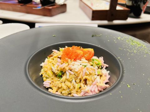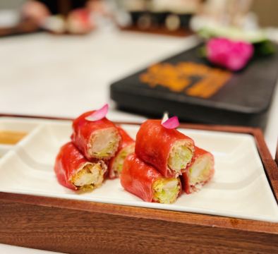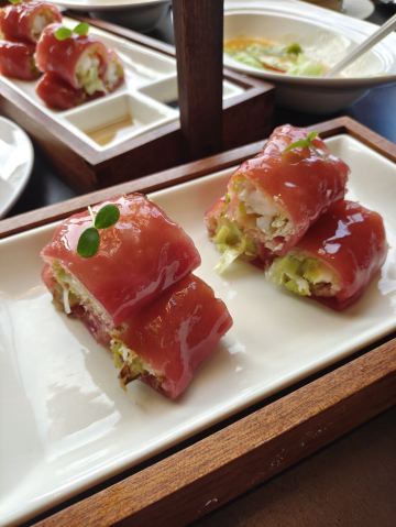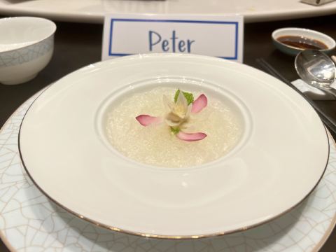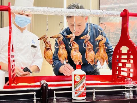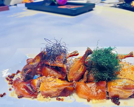 爆汁脆皮乳鸽,灯影牛肉,香芒芥末虾球,青雅虾饺皇,桂花瑶柱紫米粉,始创红米肠,核桃包,玫瑰火焰岩烧乳鸭,鲜松茸功夫汤