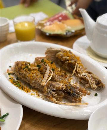 椒盐烤罗氏虾,深海鱼油海苔焗饭,拉加维加斯长脚蟹,蒜炒肉蟹,白灼花螺,三叔烧罗虾,百香果蒸鲍鱼,椒盐九肚鱼,盐焗花螺,椒盐皮皮虾,炒饭,避风塘炒蟹,蒜酱烤波龙,杂贝煲,蒜蓉烤生蚝