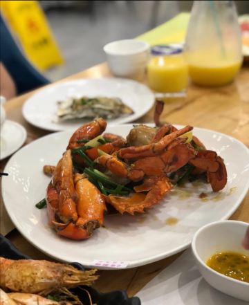 在西丽万科云城小区,周围饭店挺多的,都是比较大的那种。她家有室内室外,装修很干净大气。不过现在天气太热室外没有人坐,都没风扇!室外环境是在二楼!室内空调开的倒是很足! 整体服务很一般,没有很到位,也没有很差劲,反正点菜的时候有个小姐姐跟着,也闹不懂,称了称东西扔在称上谁取走了拿去做了。 说说菜品吧。三叔烧罗虾的这个虾不能剥皮吃,剥皮就没啥味道。虾感觉一般,不是太新鲜。蒜炒肉蟹没有把夹子夹的太破所以吃起来比较费劲,肉也没有入味。我们还要了个珍珠斑,感觉没熟透了,骨架上的肉还黏住了,取不下来,明显一种没熟透的样子!耗仔海鸭蛋是我比较喜欢的一道菜,可是我怎么都没看到新鲜的,感觉是干货来做的!很是失望! 总体来说不是太值得这个价格,人均300左右。