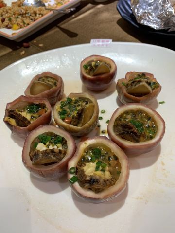 烤大罗虾,刺身三文鱼,超罗氏虾,蒜蓉蒸青口,皮皮虾,冰菜,百香果蒸鲍鱼,避风塘肉蟹,海胆炒饭,盐焗花螺,三叔烤罗虾,蒜蓉粉丝蒸元贝,椒盐九肚鱼,蒜酱烤波龙,海皇汤