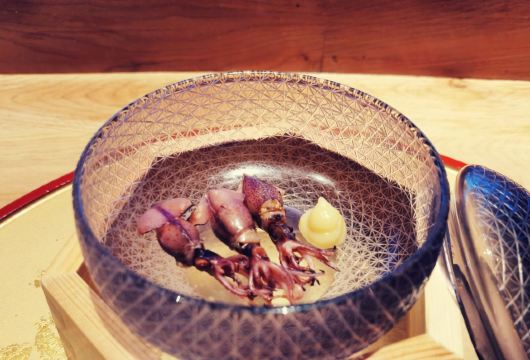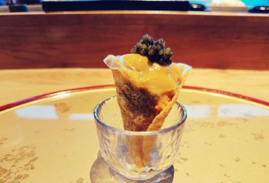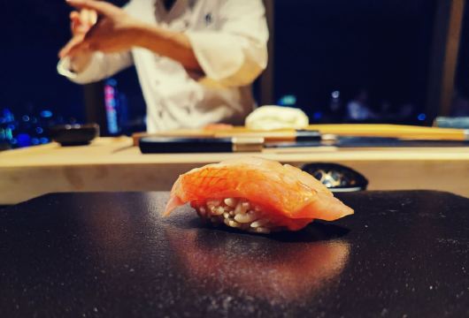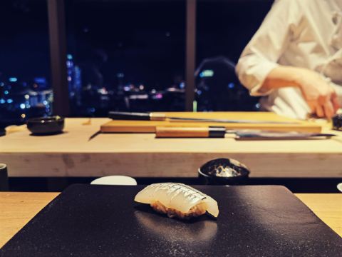 深夜食堂哥最近一直在北京出差,偶然机会回到大深圳,还是觉得回到深圳神清气爽,毕竟气候环境和美食,感觉深圳都比帝都好很多~ 今天去了朋友推荐的“隐omakase”,听闻是广州开过来的Omakase日料,能从广州开到深圳,说明功夫深,底子厚,要不然在深圳这个藏龙卧虎的地方,确实是需要勇气和信心。 餐厅位于财富大厦41楼,位置比较好找,交通也是停方便的,福田会展中心CBD商圈,人流如织,商业重地,估计租金也不便宜,而且开在41楼,目前是我吃过的最高的Omakase餐厅,称之为“高空Omakase”也是恰如其分。 师傅来自香港,年轻帅气,动作行云流水,当日餐厅比较忙,板前位置坐满了客人,和师傅没有太多的交流,一直在体验美食,不过工作人员还是非常周到,看到我一直在拍照,就和我一直介绍和聊天,发现这个美食圈子真的很小,竟然有很多共同的朋友,他也很健谈,介绍了品牌的发展和规划,还是比较有想法的,特别是他们目前推出的“999999元Omakase单人餐年卡”,个人觉得是非常超前的想法,奢爱Omakase日料的朋友,可以一试,毕竟是年卡,折合下来,每餐成本很低啊! 出品创新立意,有很多主厨自创的料理,不管是手法、装盘、口味都是别出心裁,值得细细品味。食材选料也是比较严谨,从感官上体验非常棒错。 餐厅的音乐值得一说,不同时段、不同氛围的音乐,感觉很不一样,很喜欢这样的氛围。
