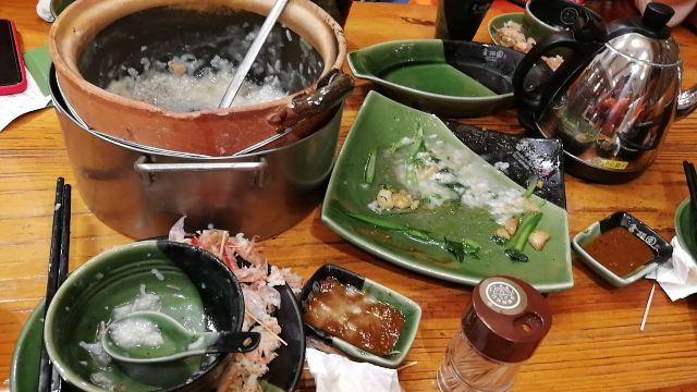 金稻园砂锅粥是用粥水煮的火锅,火锅了一遍后,粥水的料子丰富,十分清甜。