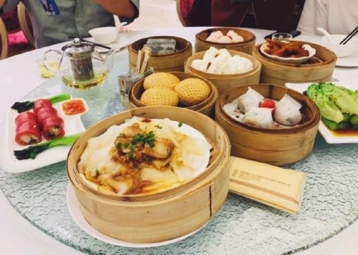 虾饺皇,特色沙姜猪手,片皮鸭,酱皇金钱肚,红烧脆皮乳鸽,飘香榴莲酥,烧鹅,红糖核桃包,老坛凤爪,芒果薄撑,流沙包,家乡薄餐,春卷,担担面,乳鸽,芒果班戟卷,化皮腩肉,鱼汤蔬菜煲,香片,家乡咸水角,芥末牛仔骨,红米炒饭,香芒绿茶薄餐,榴莲酥,虾饺,排骨拼凤爪,家乡甜薄餐