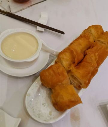 虾饺皇,一笼有五个,挺新鲜的,总体口感还不错。 叉烧焗餐包,口感超好,外皮超级松软,里面的叉烧很丰富,料很足。 油条,喝早茶的必点,面发的很好,口感扎实,皮很脆。