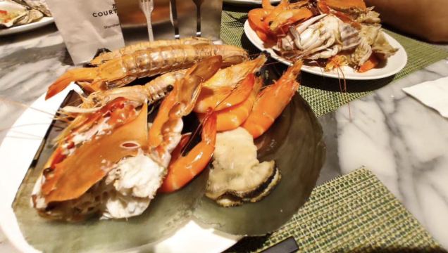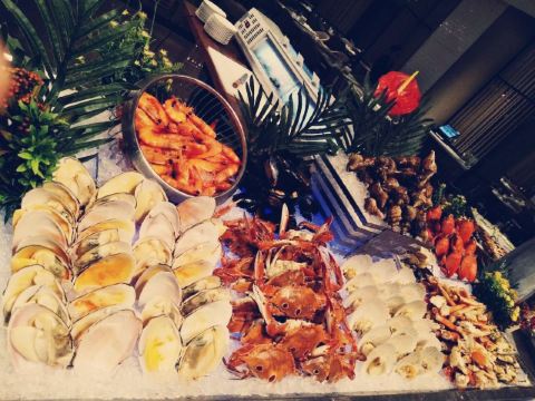 三文鱼,龙虾,豪华海鲜,巴西烤肉,冰淇淋,基围虾,刺身拼盘,烤羊腿,法式芝士蛋糕,寿司船,小火锅,黑蒜烤生蚝,龙虾番茄宽面,乳猪,野米金酿玉,铁板鹅肝,清蒸大闸蟹,蒜蓉粉丝蒸龙虾,蒜蓉龙虾,大响螺,潮式煎蚝仔烙,生蚝