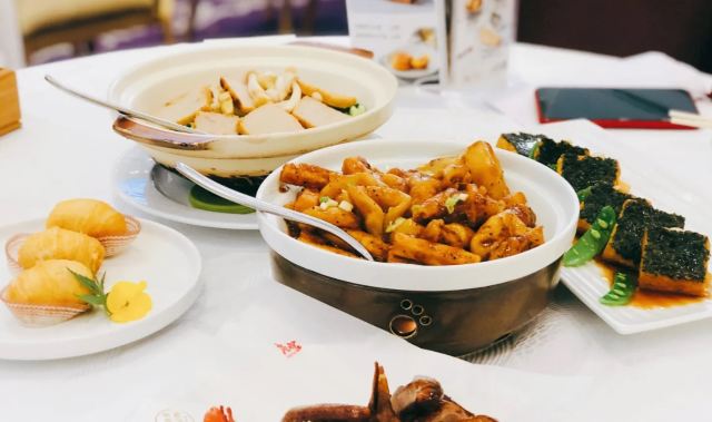 唐宫虾饺皇(6件),脆皮鲜虾红米肠,飘香榴莲酥,蛋黄流沙包,招牌乳鸽,唐宫虾饺皇精点,惹汁蒸凤爪,沙姜猪手,早茶,飘香榴莲酥(超点),唐宫烧鹅皇(例),沙爹酱金钱肚,蒜蓉粉丝蒸海虾,广州伦教糕