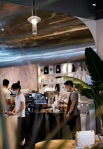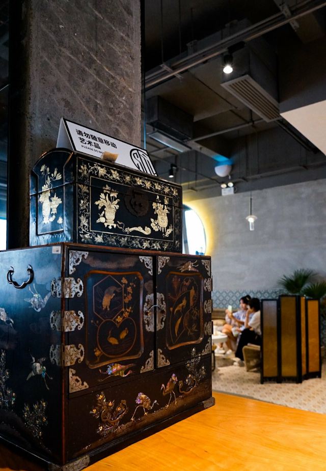 今天忙里偷闲来了「SHU CAFE」 这是既有咖啡也有鸡尾酒、同时还汇集了美术馆、艺术超市的这么一个空间。 SHU主要以牛油果绿色为基调,就很夏日啦~尤其是庭院有个露天的天井,光线很充足,非常适合拍照。 再配上绿植和木质的桌椅,仿佛置身在东南亚的某家咖啡馆,但同时你会发现店内的地面和摆件装饰却是很新中式,这样的搭配竟然出奇的融洽、新奇。 因为害怕踩雷只点了杯主推的拿铁「脏脏」,谁知大夏天戴着口罩走过去太闷了,出现恶心头晕状态,所以没喝几口,没品出啥味道~倒是抹茶味的冰淇淋蛋糕还不错,香甜软糯不腻。 可能是因为新开的原因,不是周末天的下午也特别多小姐姐小哥哥过来拍照打卡,如果你也只是想来拍照打卡是不错的。