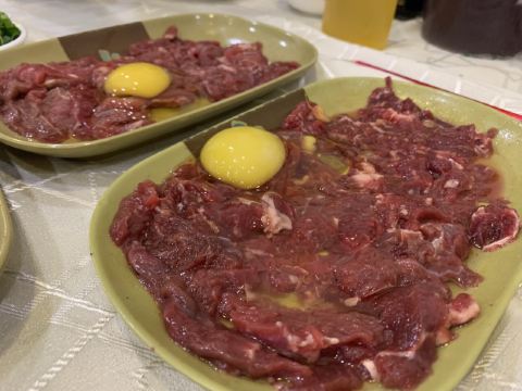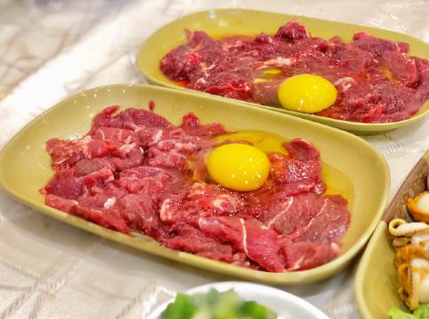 一进门就是浓烈的油烟味。周一晚上8点到,还要等位五桌,美食街最红的仔!看菜单价格公道怀疑分量,看分量实诚怀疑味道,吃到嘴里感觉太值啦!只点了牛五花,大肠和菜心,牛肉送鸡蛋🥚自己打散滑肉,肠头新鲜干净肥肉香,实在配得上平靓正!老板nice,猫们懂事