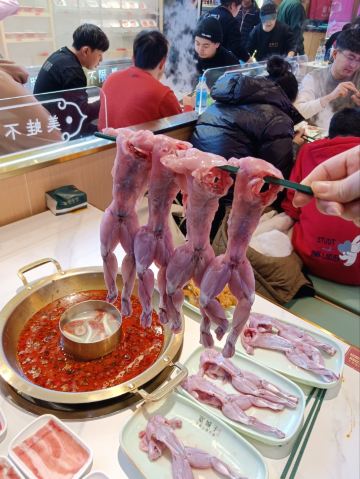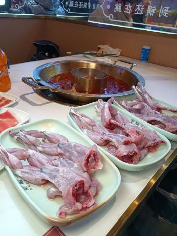 杀生了,得吃几天斋了。 牛蛙上来还是活的!活牛蛙自助不限量续加。 自助取菜柜子干净时尚。菜品丰富,还有水果,冰激凌,冰粉。怪不得要排号等位。 从苏州已经开到北京了。