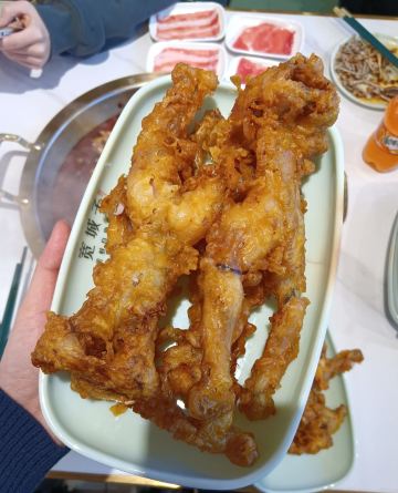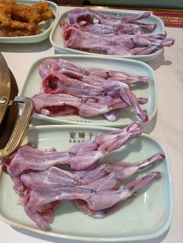 旅游度假杀生了,得吃几天斋了。 牛蛙上来还是活的!活牛蛙自助不限量续加。 自助取菜柜子干净时尚。菜品丰富,还有水果,冰激凌,冰粉。怪不得要排号等位。 从苏州已经开到北京了。