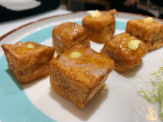 苏州中心有很多间茶餐厅 润记茶餐厅是造访最多次的 质量及口味都很稳定 假日高峰大概15分钟就排到了 「烧味拼盘」 叉烧跟烧鸭 这次叉烧上的部位不错 肉跟油脂刚好一半一半 烧鸭的部位就普通 但皮很脆肉软硬刚好 还是很值得点 「虾饺皇」 每桌必点 虾肉很饱满饺皮有弹性 「牛肉炒饭」 炒饭粒粒分明 酱香味道很足 完全不用配其他料就非常好吃 适合三个人吃 「一口西多式」 一口的设计很棒欸 每一口都能吃到酥酥的外皮 里面的花生酱也很足 好吃又能很好分食 「椰汁龟苓膏」 大推大推 龟苓膏真的很好吃 尤其是搭配椰汁 没有一口觉得苦!! 「牛肉肠」 整场就只有这道比较⋯ 肠粉味道很好 就是很薄牛肉很碎不知道自己在吃的是什么 润记还是很不错的 性价比合理 品质也在一定水准
