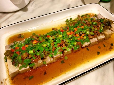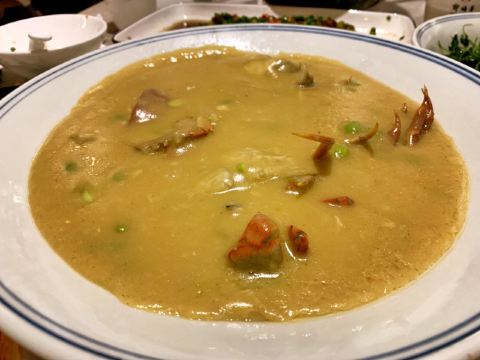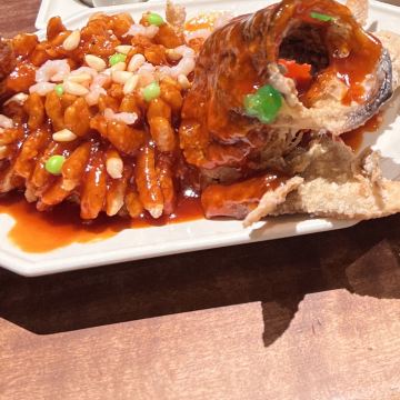 痴痴的饿货去苏州金鸡湖附近逛逛,旁边就是苏州中心非常大的购物商场,搜到了这家评价很高的店,感觉也是吃苏州菜五点左右过去已经开始排队了,拿了个号排了半个多小时,大堂桌数也不少估计里面还有包间,点了招牌的松子桂鱼,虽然鱼不大但看着就有食欲,炸得刚刚好外脆里嫩还保留鱼肉本身的水份,一吃就知道很新鲜,本以为苏州菜会很甜,其实正好,好久没吃到色香味俱全的松子桂鱼了,真的一会就消灭了一条鱼;其他还点了芋艿,非常软糯而且入味,还加这肉很香,只是吃多了会有一点点油腻;咕咾肉是送的也不含糊,量也不小,茄汁味的青椒也挺好吃的,外面裹的面粉稍微多了点但还是脆,还点了几只六月黄,烧了老半天上桌几乎吃不动了就吭了几口,好大一碗汤底感觉应该配点面疙瘩更好,草头也很新鲜火候刚好,挺喜欢这家店的,味道价格都不错,下次有机会再来吃一顿。