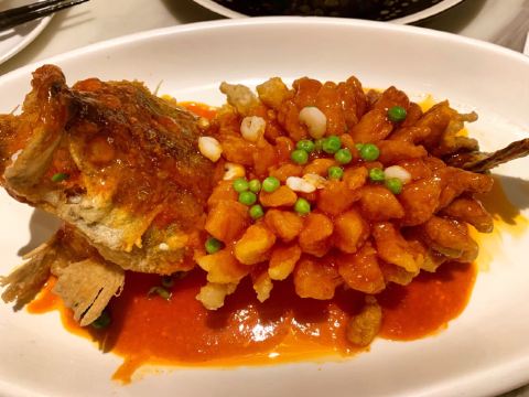 XIN MEI HUA去苏州金鸡湖附近逛逛,旁边就是苏州中心非常大的购物商场,搜到了这家评价很高的店,感觉也是吃苏州菜五点左右过去已经开始排队了,拿了个号排了半个多小时,大堂桌数也不少估计里面还有包间,点了招牌的松子桂鱼,虽然鱼不大但看着就有食欲,炸得刚刚好外脆里嫩还保留鱼肉本身的水份,一吃就知道很新鲜,本以为苏州菜会很甜,其实正好,好久没吃到色香味俱全的松子桂鱼了,真的一会就消灭了一条鱼;其他还点了芋艿,非常软糯而且入味,还加这肉很香,只是吃多了会有一点点油腻;咕咾肉是送的也不含糊,量也不小,茄汁味的青椒也挺好吃的,外面裹的面粉稍微多了点但还是脆,还点了几只六月黄,烧了老半天上桌几乎吃不动了就吭了几口,好大一碗汤底感觉应该配点面疙瘩更好,草头也很新鲜火候刚好,挺喜欢这家店的,味道价格都不错,下次有机会再来吃一顿。