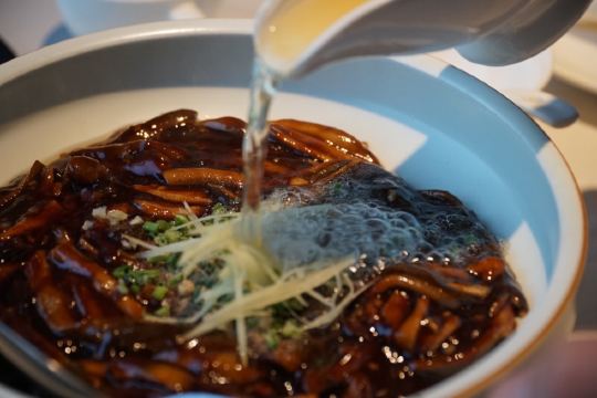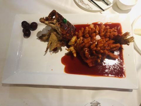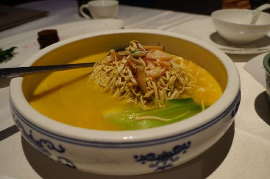 在苏州中心四楼,里面的装修古色古香,很有老苏州的味道,我们挑了个靠窗的位置,景色很不错,整个菜品价格不便宜,三个人点了近600元,整体菜的感觉是原料比较新鲜,口味清淡不油腻,除了推荐的响油鳝糊,清溜河虾仁,另外还有一个特别推荐的,清汤狮子头,真是鲜嫩美味,是我吃过的最好吃的狮子头!