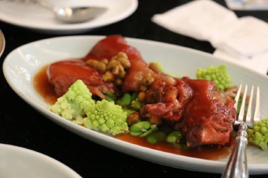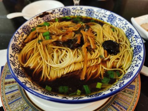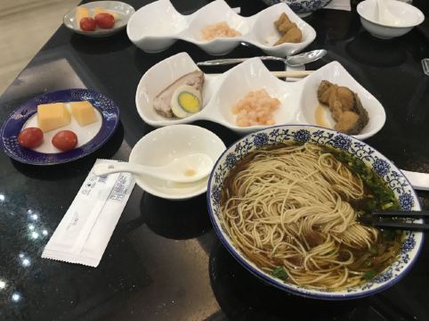 如果住在东山宾馆,那附近地区可以吃饭的地方并不多,所以如果真的住的话,那酒店的餐厅就是不二的选择了,不过其实宾馆区域比较大,能吃的还是挺多,这个餐厅属于早餐自助餐厅,晚上也有奥灶面提供,还是非常有特色的。苏式奥灶面,这个太给力了,一份面配上好几个配菜,河虾仁爆鱼和焖肉味道加上去,很有苏州的味道,虽然不一定健康。酒店的自助早餐也在这里,品种还是比较丰富的,不过因为人也挺多的,特色也就感觉一般了。