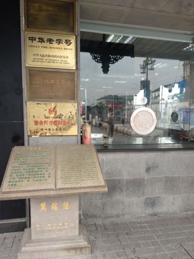 陆稿荐始创于康熙二年(公元1663年),从醋坊桥走上观前街,看到的第一家店铺便是陆稿荐,售卖熟食的窗口时常排队,人气很高。陆稿荐以酱汁肉名扬姑苏,肥而不腻的五花肉入口即化,口感甜甜的。