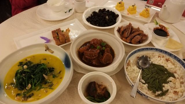 松鼠鳜鱼,响油鳝糊,苏式卤鸭,蟹粉豆腐,苏式枣泥拉糕,清溜虾仁,三白狮子头,樱桃方肉,莼菜银鱼羹,鸡头米甜豆,紫砂燒肉,松鼠鲑鱼,萝卜丝饼,干煸茶树菇,酱鸭,卤鸭,紫砂烧肉,银鱼莼菜汤,苏式拉糕,狮子头,油爆虾,细露蹄筋,樱桃肉,松鼠桂鱼,苏式酱方,清炒虾仁