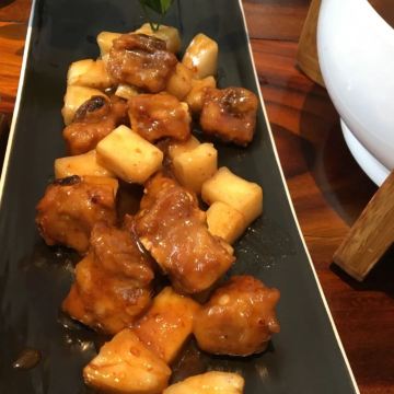 小朋友请吃饭,本来想吃日料的,结果帝都现在一出,索性就安稳点就吃熟食吧,选了一家吃闽南菜的,位于园区协鑫广场的拾壹雅苑。 环境比较简洁雅致,偏新中式风格吧,不豪华,但是感觉比较舒适。一入座就上了红枣桂圆茶、闽南特色茶点枕头饼和餐前水果,这点比较大气吧,不像好多店一进包厢先问要不要泡茶,还是收费的。我们就把鸡鸭鹅鱼都点了,芝麻脆皮鸡、泉州姜母鸭、火焰花雕黑棕鹅和青青椒麻蒸龙胆鱼,佛跳墙等都点了。 口味都很不错,朋友们都很喜欢,而且自带酒水都不收费