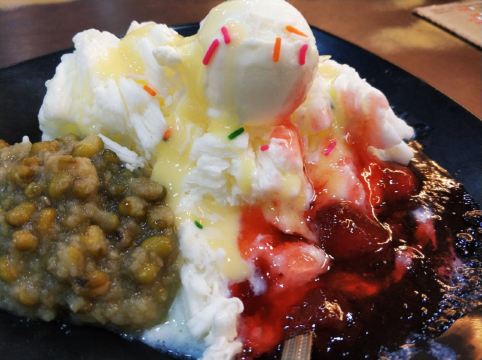 看到一篇攻略推荐同记安平豆花里的牛奶冰,所以逛完安平的景点,就顺着安北路走到店里尝一尝。 忍住好奇没点特色黑豆花,果然没有失望。牛奶冰真的是牛奶做的冰,打成绵绵冰后口感非常好。就是草莓酱太甜了,不喜欢甜的慎入。