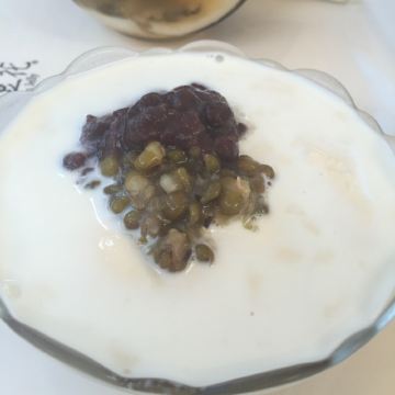 现磨豆花,味道很浓郁很好吃,里面的红豆和花生煮的也很软烂。