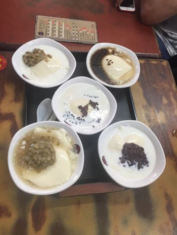 豆花,珍珠牛奶豆花,香浓鲜奶豆花,竹炭豆花,紅豆豆花,珍珠绿豆豆花,珍珠綠豆豆花,竹炭黑豆豆花,传统白豆花,绿豆豆花,雪花冰,柠檬豆花,粉圆冰,黑豆花,日式抹茶雪花冰,综合黑豆花,柠檬黑豆花,珍珠豆花