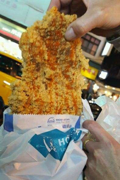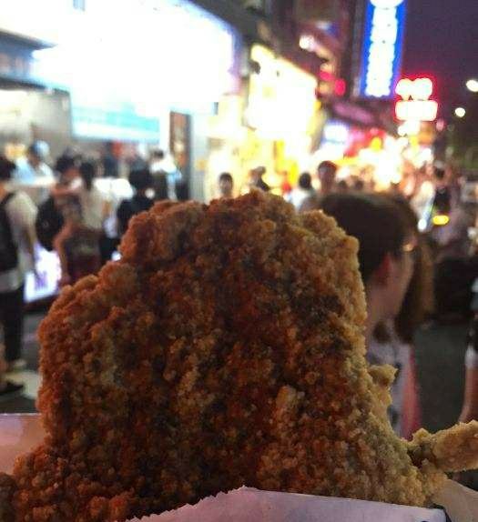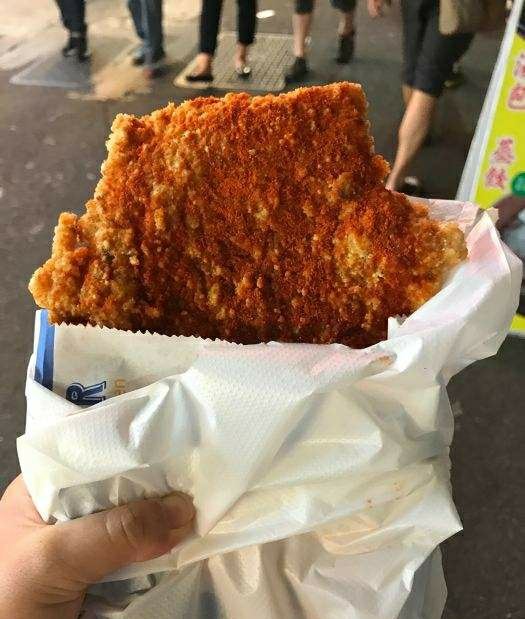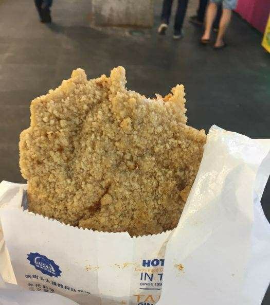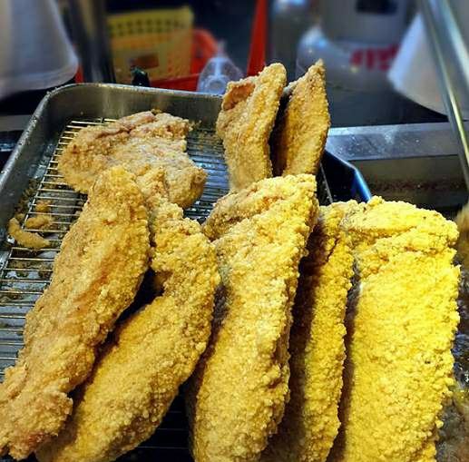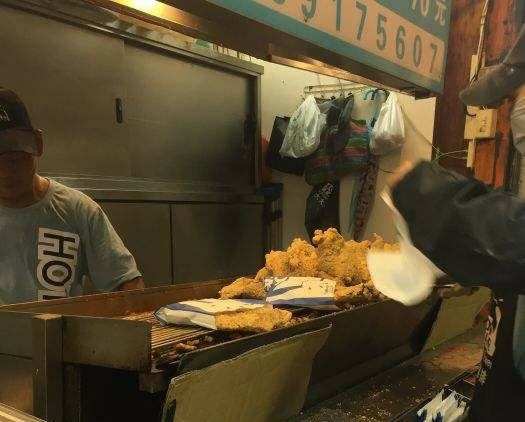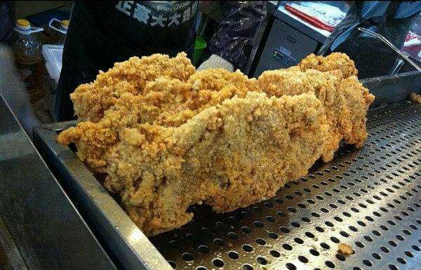 鸡排是夜市的标配小吃,到士林夜市当然也不例外。阳明戏院前的一整排摊子就有好多家在卖,但是“豪大大鸡排”绝对是首选,二十年来豪大大已经把分店开到了世界各地。他家用的是特质的酱料腌制过的鸡排,下油锅前先打面糊,炸到金黄色时捞起,面衣香,分量足。配上啤酒一起吃的话,简直惬意。