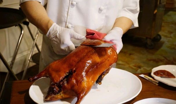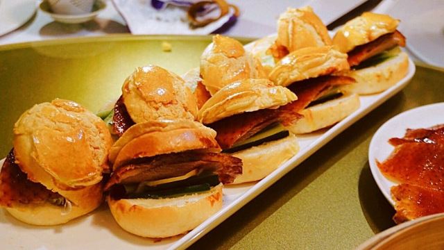 这家店最出名的就是烤鸭了哦,正宗的北京做法哦,里面的填鸭很肥哦,那个配上菠萝包的吃法也是第一次吃,里面的避风塘大虾味道也很棒。