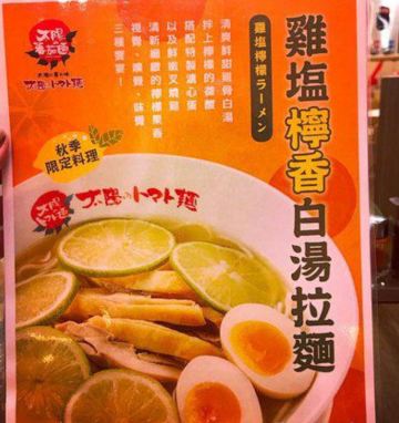 太阳蛤蜊拉面,太阳起司拉面,太阳蕃茄拉面,太阳滑蛋拉面,特制炸鸡,可乐饼,太陽素拉麵,芝麻布丁