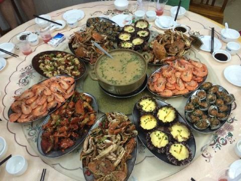 说是粗茶淡饭,还是海鲜,海岛嘛,海鲜为主。