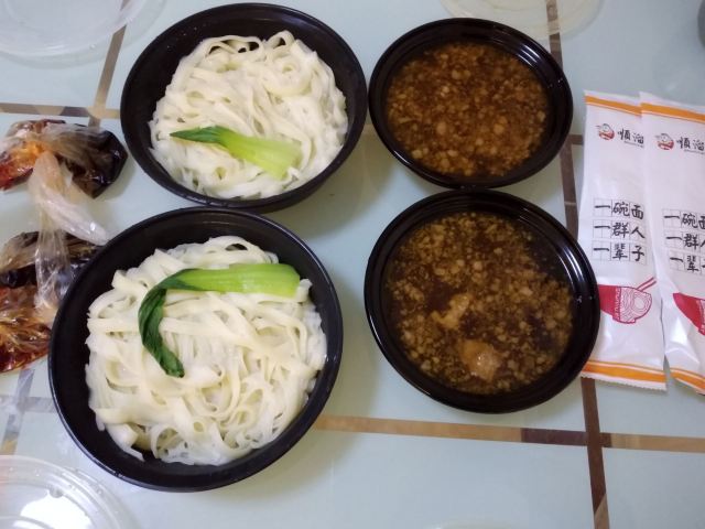 在携程推荐的这家店叫过两次外卖了,第一次吃的是拌面,这一次传统猪肉面。两款面都一如既往地好吃。 口味不错,做工不错,食材不错,餐具不错,谢谢店家答应给我们大份的醋和辣酱。 来山西就是吃面,的确如此呀! 吃山西的面我们总结出了一条规律,就是必须多加醋多加辣椒,有条件还可以加些蒜碎,好吃到流泪了! 不加醋和辣酱的山西面实在是没什么特色,也不怎么好吃。所以,山西吃面是有讲究的!