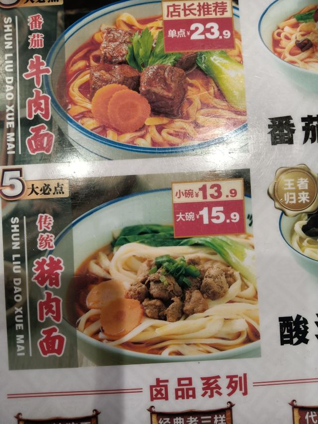 番茄三鲜面,焖面,火锅面,传统猪肉面,招牌肉臊面,番茄鸡蛋刀削面,飘香热拌面,卤鸡蛋,陈醋海带丝,卤丸子,老醋花生米,热情火锅面,卤肉饭,浑源凉粉