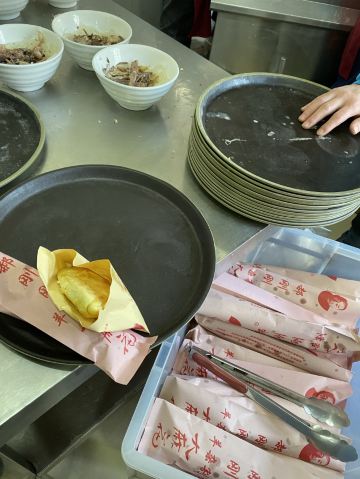 Smilingsnail应该算得上是太原的著名特色餐厅了,位于柳巷商业街上,切记一定要在标注的营业时间内来(特意拍了照片)晚了三分钟就别想进来了。进门直接扫码,基本都是汤加烧饼或者麻花的标配,流水线般的取餐。羊杂割有内脏还是点羊肉汤吧,汤底都是一样的,一款普通一碗精品,精肉是要多一点,汤很是鲜美,薯粉也口感正好,冬天里这一碗下去很妥帖,但整体份量不大,不加上烧饼麻花垫上就像没吃一样,下午两点差十分到的,刚喝完一口汤,店里就开始打扫了,也不问客人还要不要,直接拿起吃的差不多的碗就开始收了,关门前老板对着大家吆喝了一句还有没要加的,没两分钟伙计们就开始麻溜的收拾厨房了,这叫一个迅雷不及掩耳。口味正老板也是霸气,价格小贵不够亲民, 游客打卡品尝还是可以的。